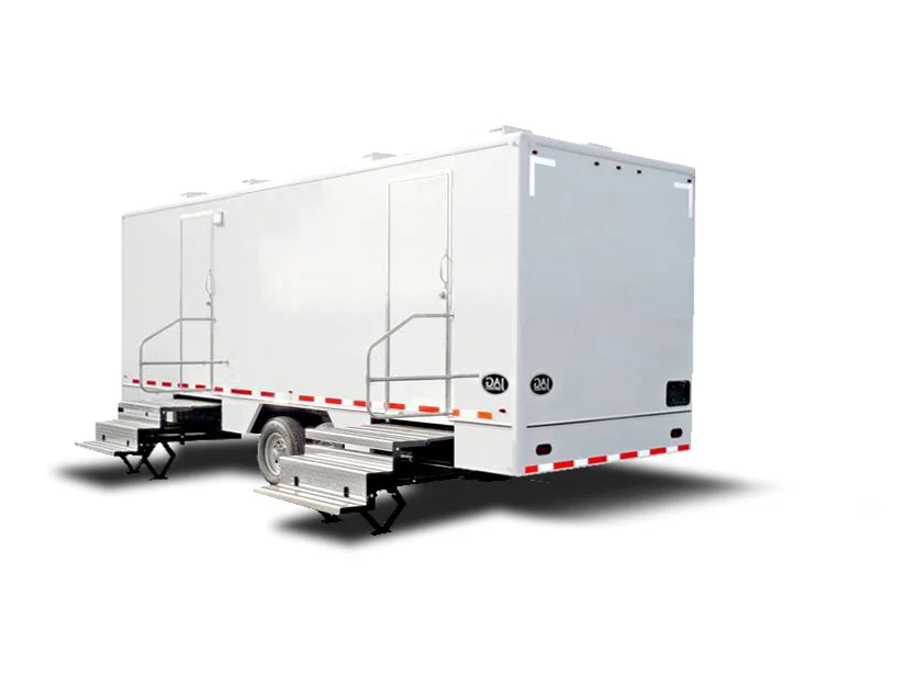 The Prestige Urban 10 station trailer is a stunning choice that features a contemporary color scheme of grays and blacks with stainless steel accents. Distinctive cathedral arched doors, custom valances, etched mirrors and a central stereo system make the Prestige Urban Series an excellent choice for larger, lavish events. The women’s suite features five stalls and two sinks; the men’s suite features three urinals, two stalls, and two sinks.